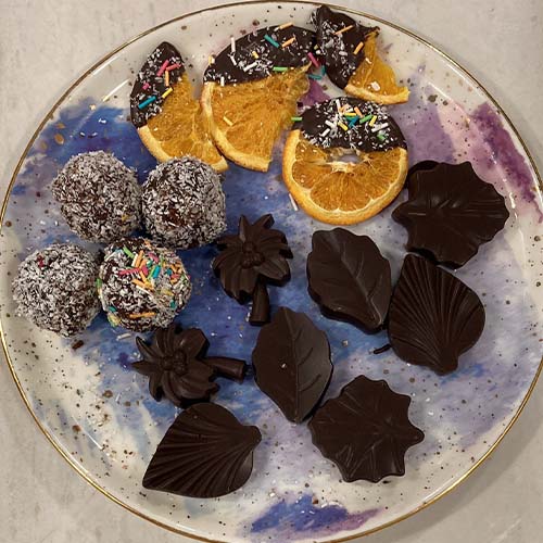 Öncelikle Gerçek Belçika çikolatası ile çikolata yapım tekniklerini eğitmenimiz eşliğinde bir taraftan öğrenirken bir taraftan da farklı malzemelerle el yapımı gurme çikolatalar tasarlıyoruz.