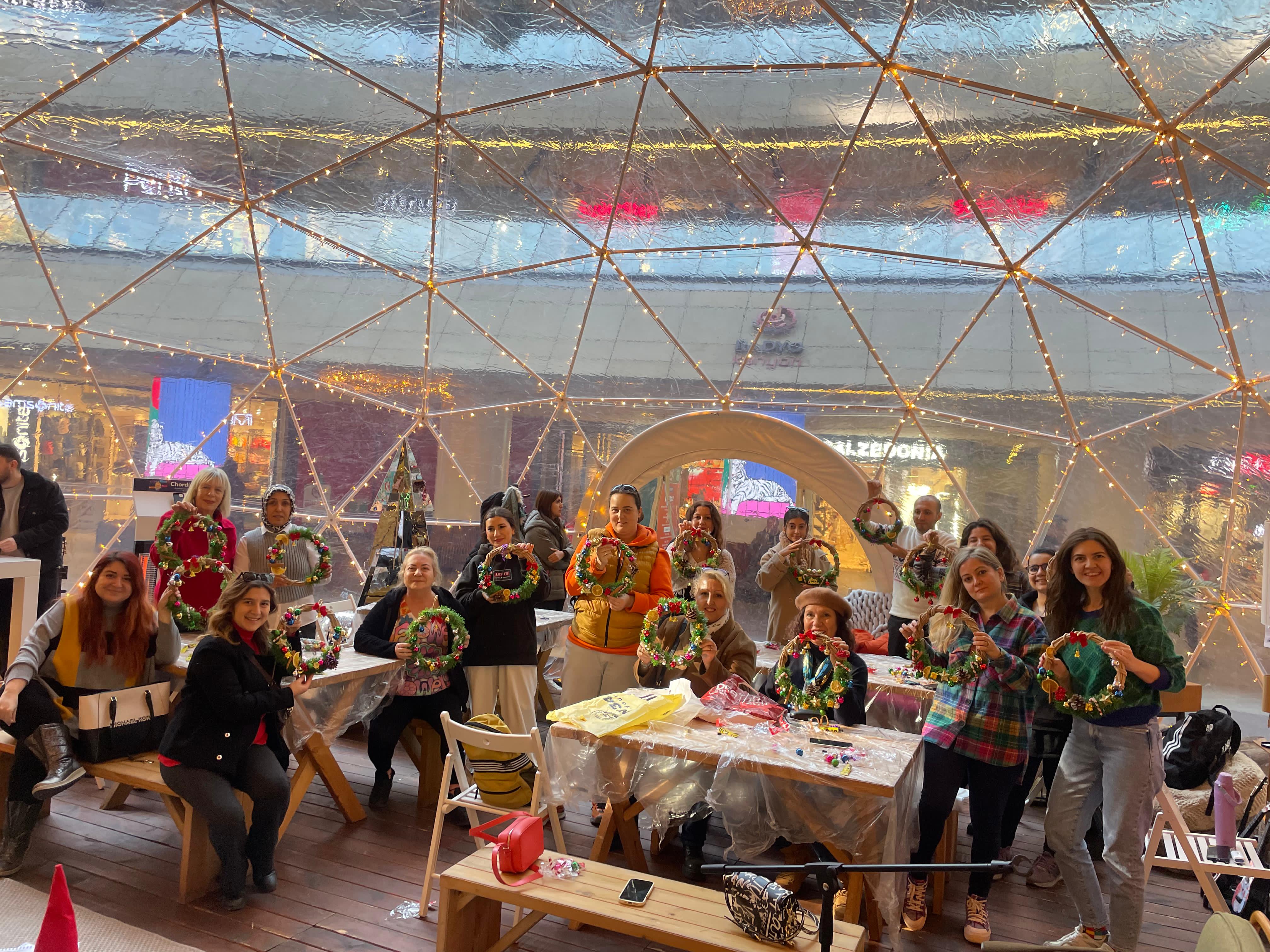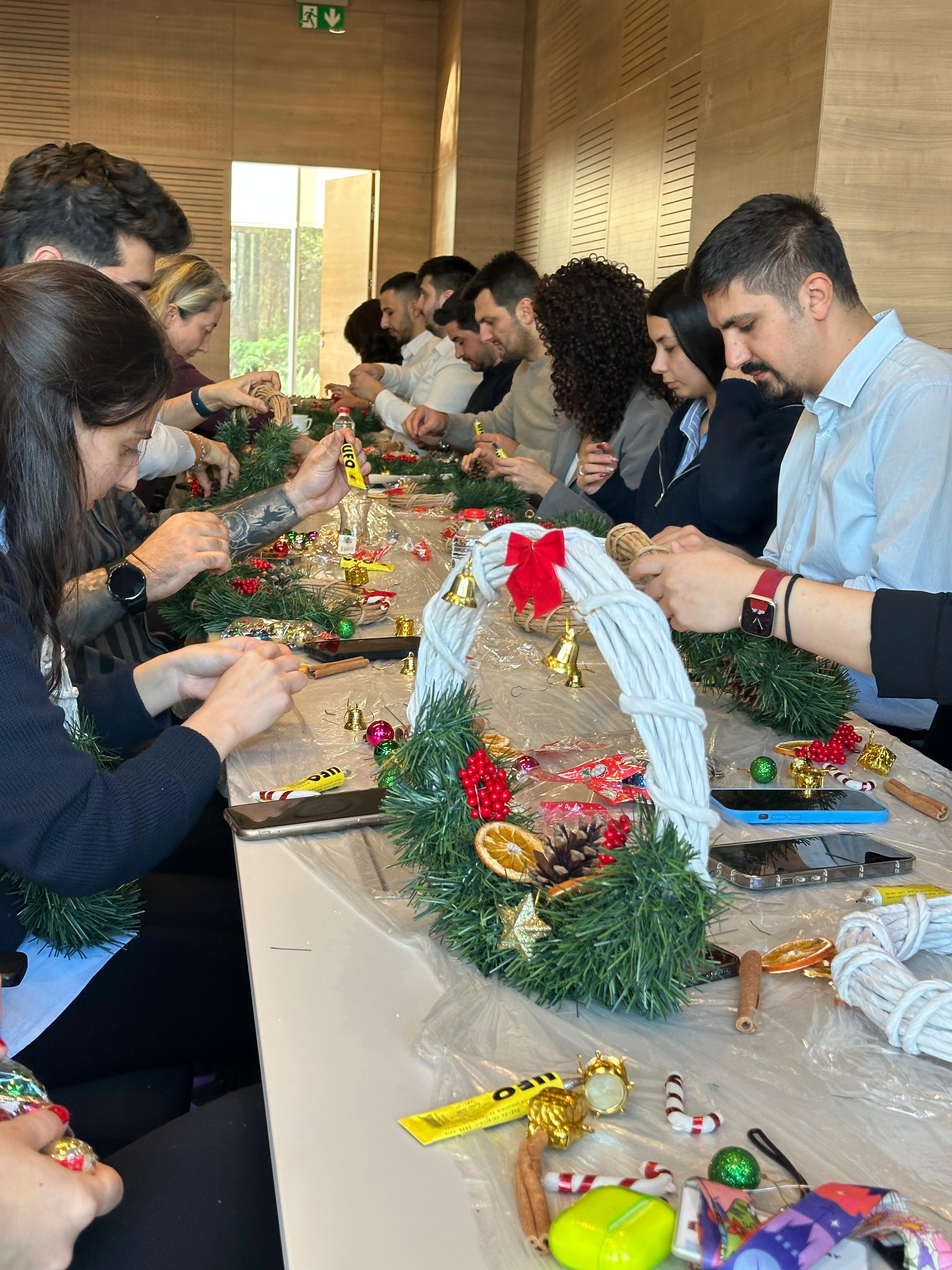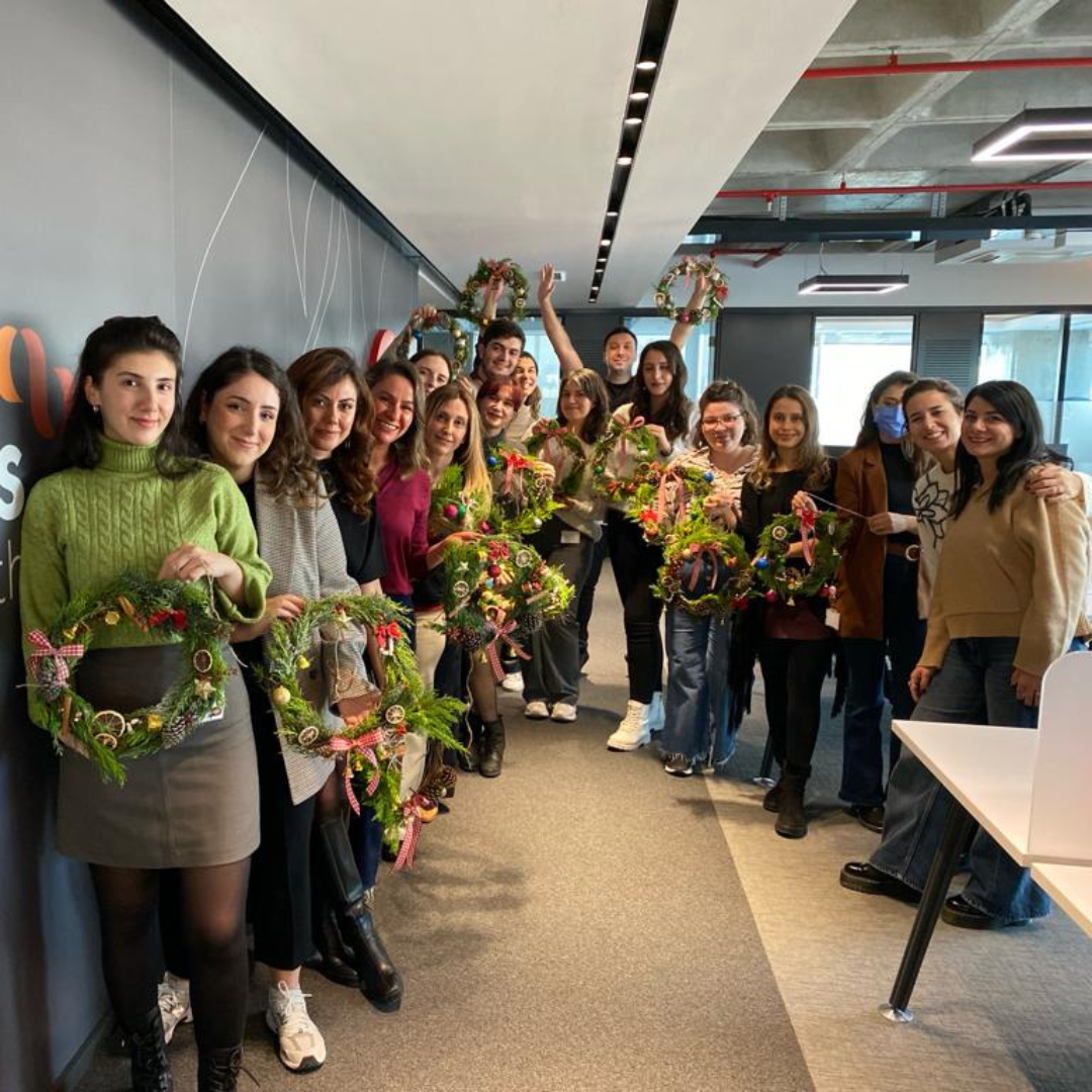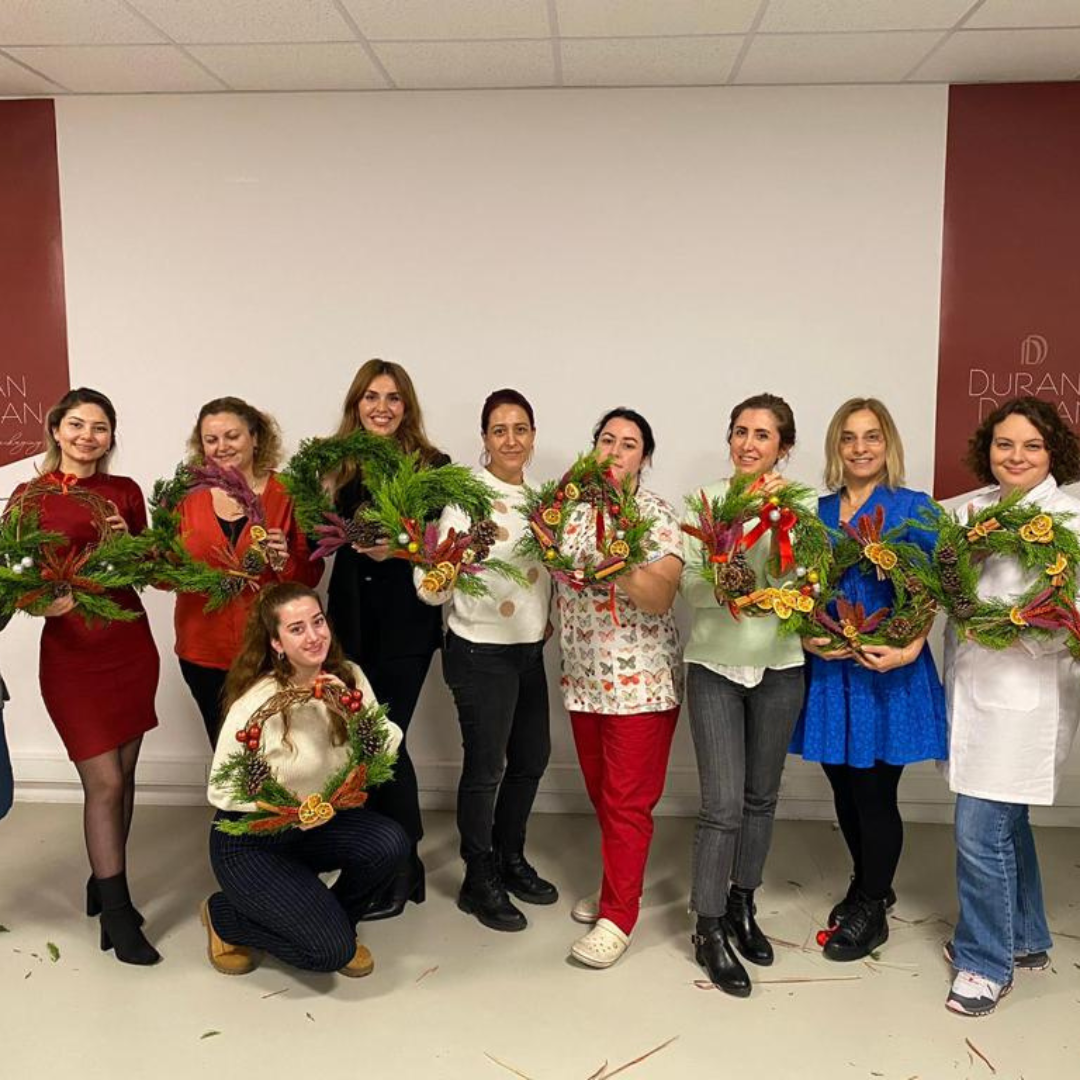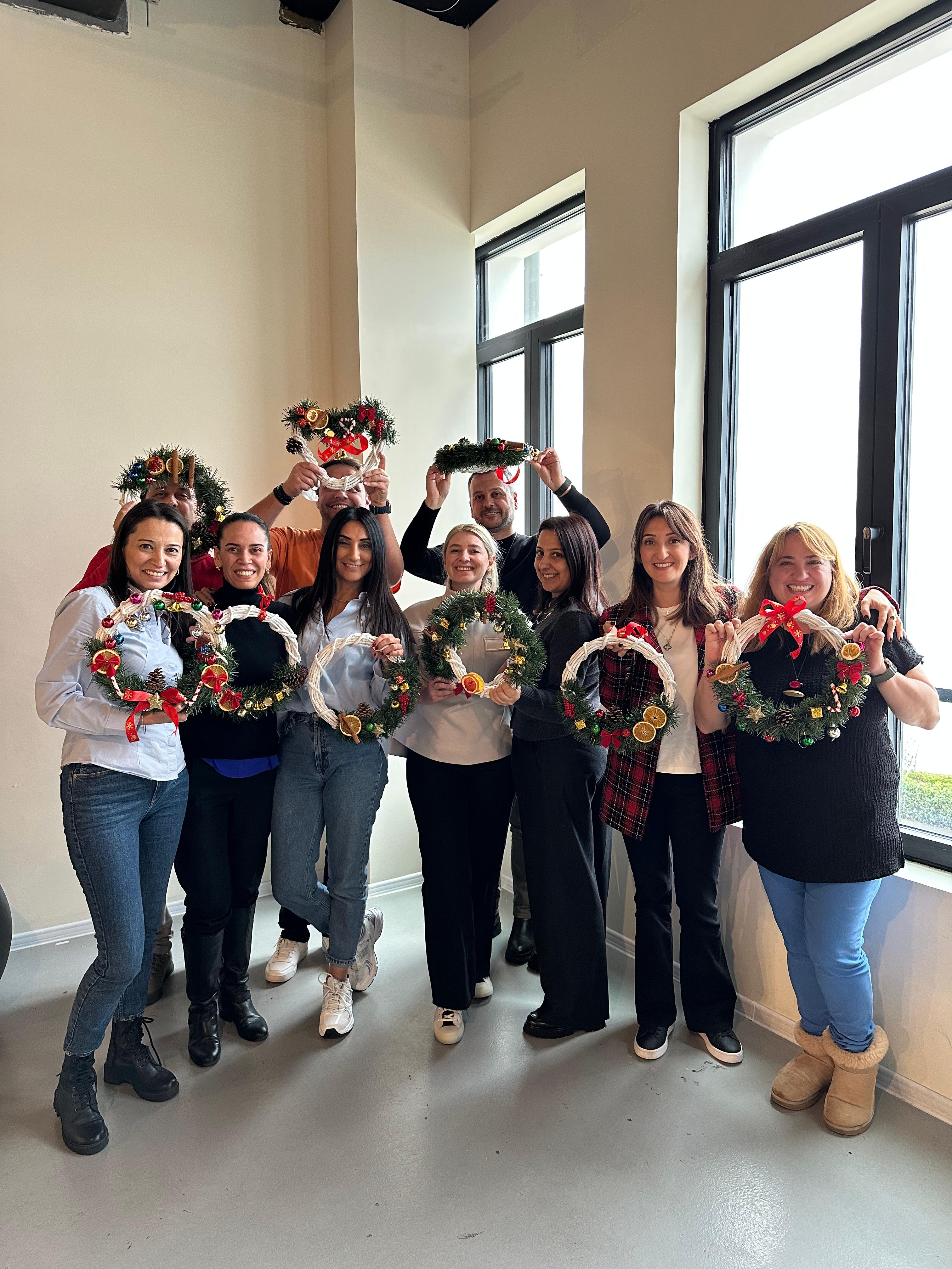Yılbaşı Kapı Süsü Yapımı Atölyemizde, çalışanlarınız kendi elleriyle kapı süslerini tasarlayarak hem el becerilerini geliştirecek hem de iş yerinde keyifli bir yılbaşı atmosferi oluşturacaklar. Çam dalları, kozalaklar, kurdeleler ve ışıklarla, her katılımcı kendi hayal gücünü yansıtan, sıcacık bir dokunuş katabileceği kapı süsleri tasarlayacak.
