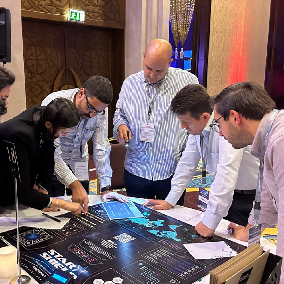 Ekiplerin 8-10’ar kişilik takımlar halinde yuvarlak masalar etrafında, 1×1 metre ölçüsünde seçilen oyun senaryosuna özel tasarlanmış dev board etrafında oynadığı kurumsal takım oyunudur.