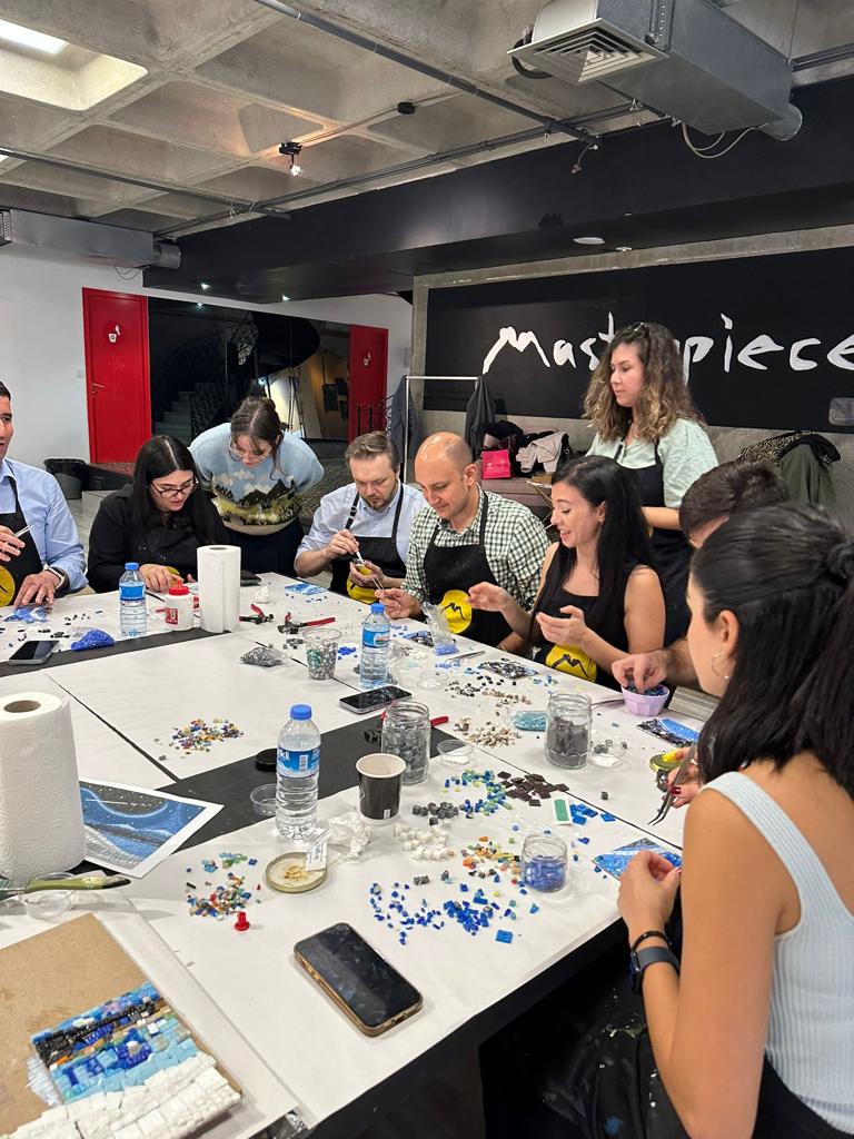 Yüzlerce mozaik taş, katılımcıların ellerinde birleştiriliyor ve dev bir eser oluşturuyor. Eserde ise firma logonuz, sloganınız veya özel görseliniz olabilir. Boyutları hayal gücünüzle sınırlı olacak eserinizi sonrasında dilediğiniz yerde sergileyebilirsiniz.