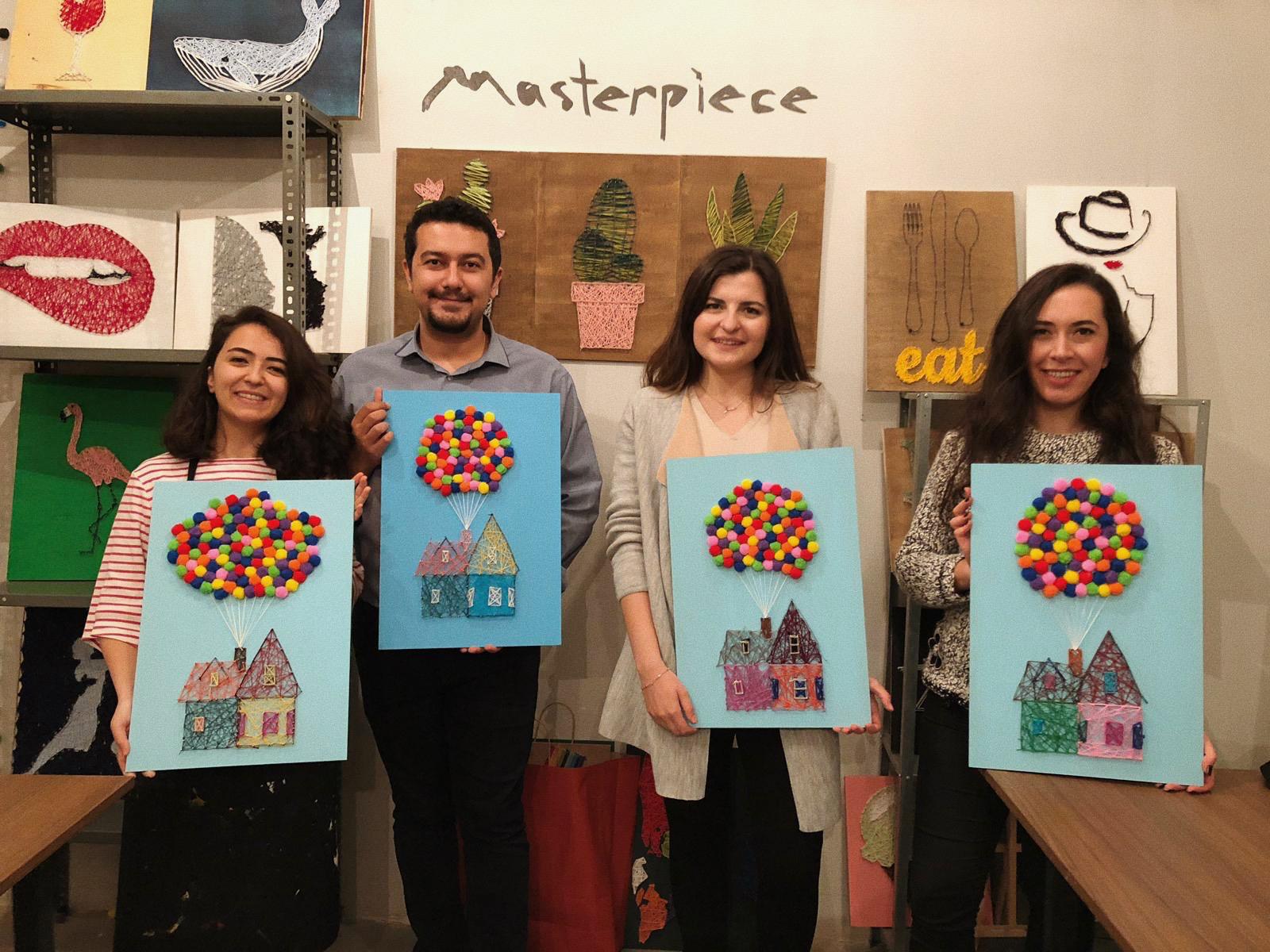 Masterpiece String Art Atölyesi'nde çalışanlarınız ham bir ahşap parçasını adım adım dekoratif bir esere dönüştürecekler. Diledikleri bir eser üstüne çivileri çakarken birlikte eğlenecek, ipleri çiviler etrafında dolarken ise meditasyon yaparmışçasına rahatlayacak, zamanın nasıl geçtiğini anlayamayacaklar.