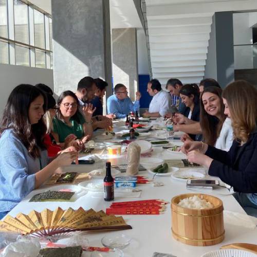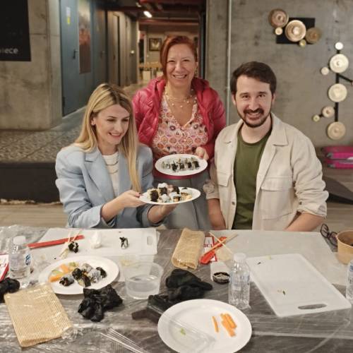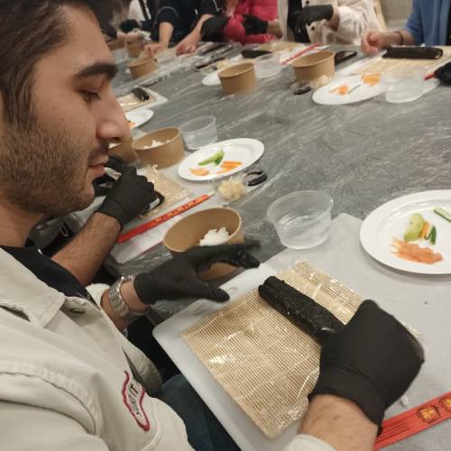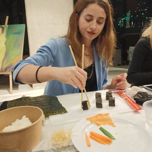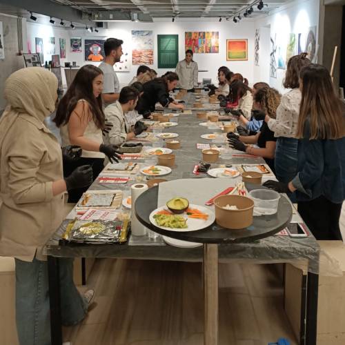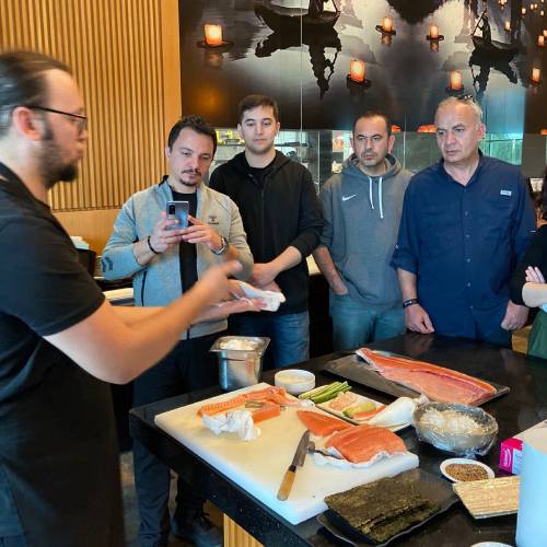 Ekip olarak sushi seviyorsanız, bu etkinlikte tüm malzemeleri size bir kit olarak sunuyoruz ve birlikte harika sushiler yapıyoruz. Japonya'da eğitim almış ve uzun yıllar deneyimi olan usta eğitmenimizin keyifli anlatımıyla beraber herkes kendi sushilerini tamamen kendi elleriyle hazırlıyor. Sonrasında da tadım ve muhabbet kısmına geçiyoruz.