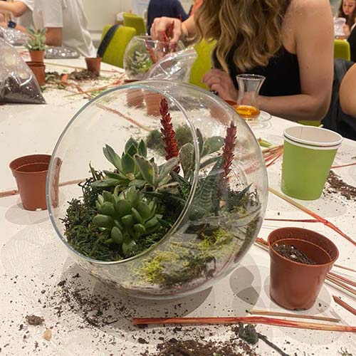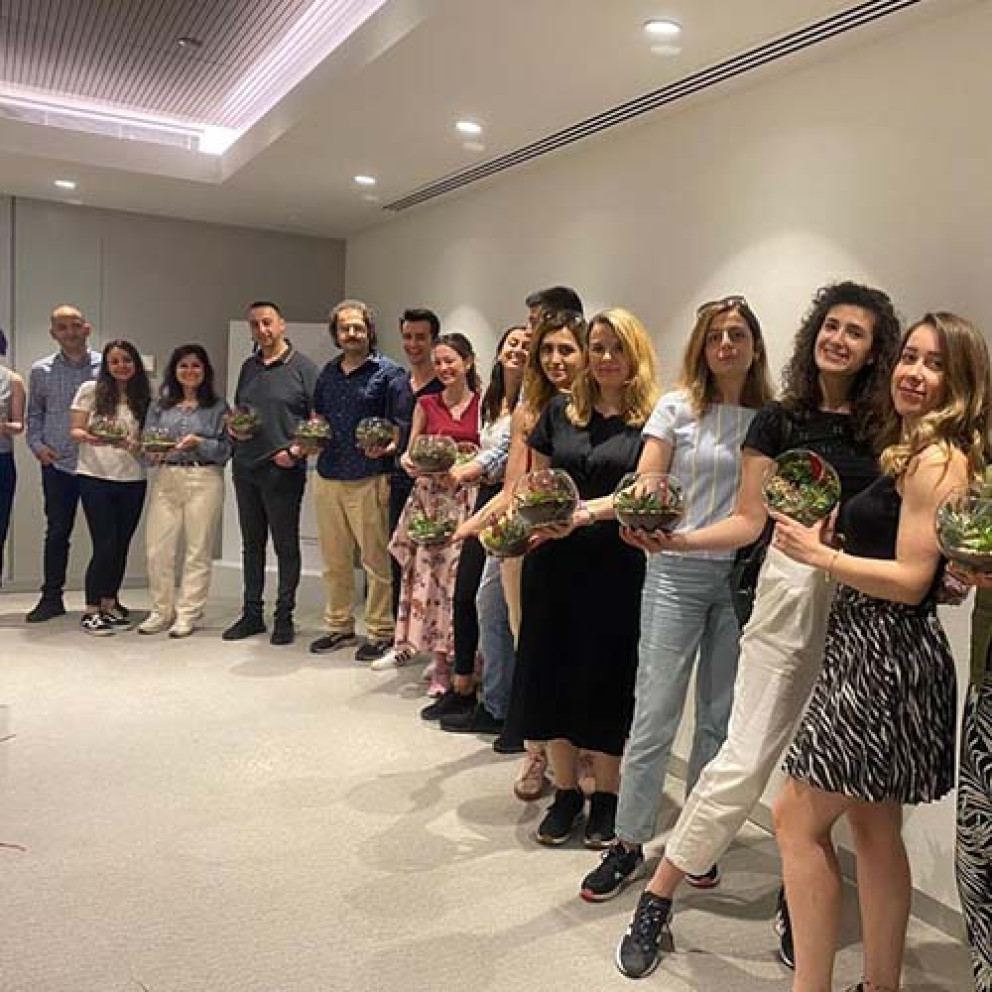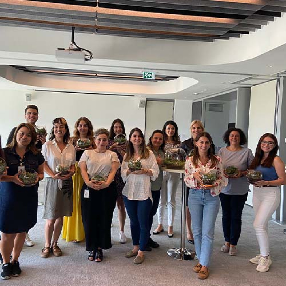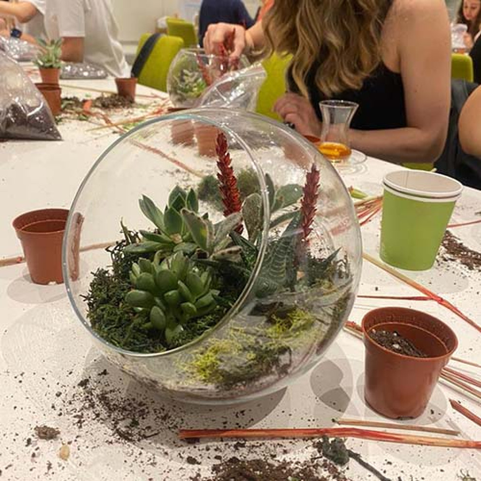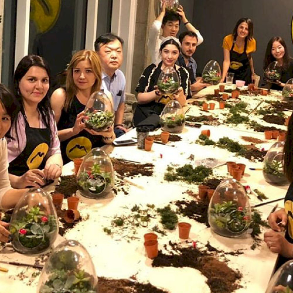 Masterpiece Terraryum Atölyesi'nde her bir katılımcı eğitmenimizin adım adım yönlendirmesi ile kendi minik bahçelerini yaratacaklar. Bu etkinlikte çalışanlarınız mini mini bitkiler, çeşit çeşit kaktüs ve sukulentlerle kendi aranjmanını yaratacak, toprağa dokunmanın verdiği rahatlamayla stres atacaklar. Yetenek ya da deneyime ihtiyacınızın olmadığı bu atölyede tüm malzemeler bizden, deneyimlemek sizden. Dilediğiniz temaya göre farklılaştırılabilen terraryum içerikleri ile etkinlik sonunda doğanın yarattığı güzelliklerle yapılan terraryumlar evinizdeki ya da iş yerinizdeki masaları süsleyecek.